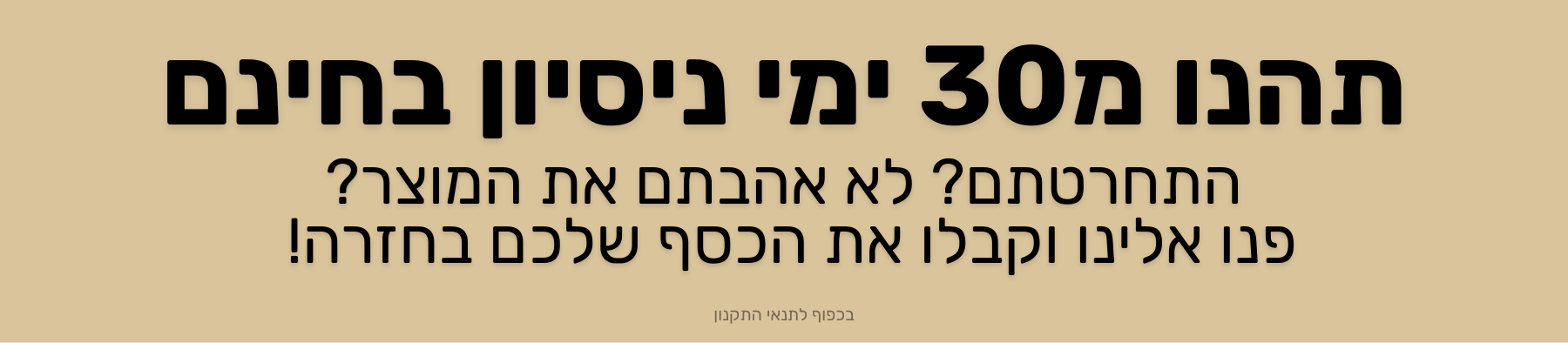 כן! אנחנו בטוחים מאוד במוצרים שלנו, ולכן נותנים לך אפשרות להחליף / להחזיר תוך 30 יום מקבלת המוצר. (בכפוף לתקנון) אם יש בעיה - פנו אלינו ותוכלו לקבל החזר כספי.